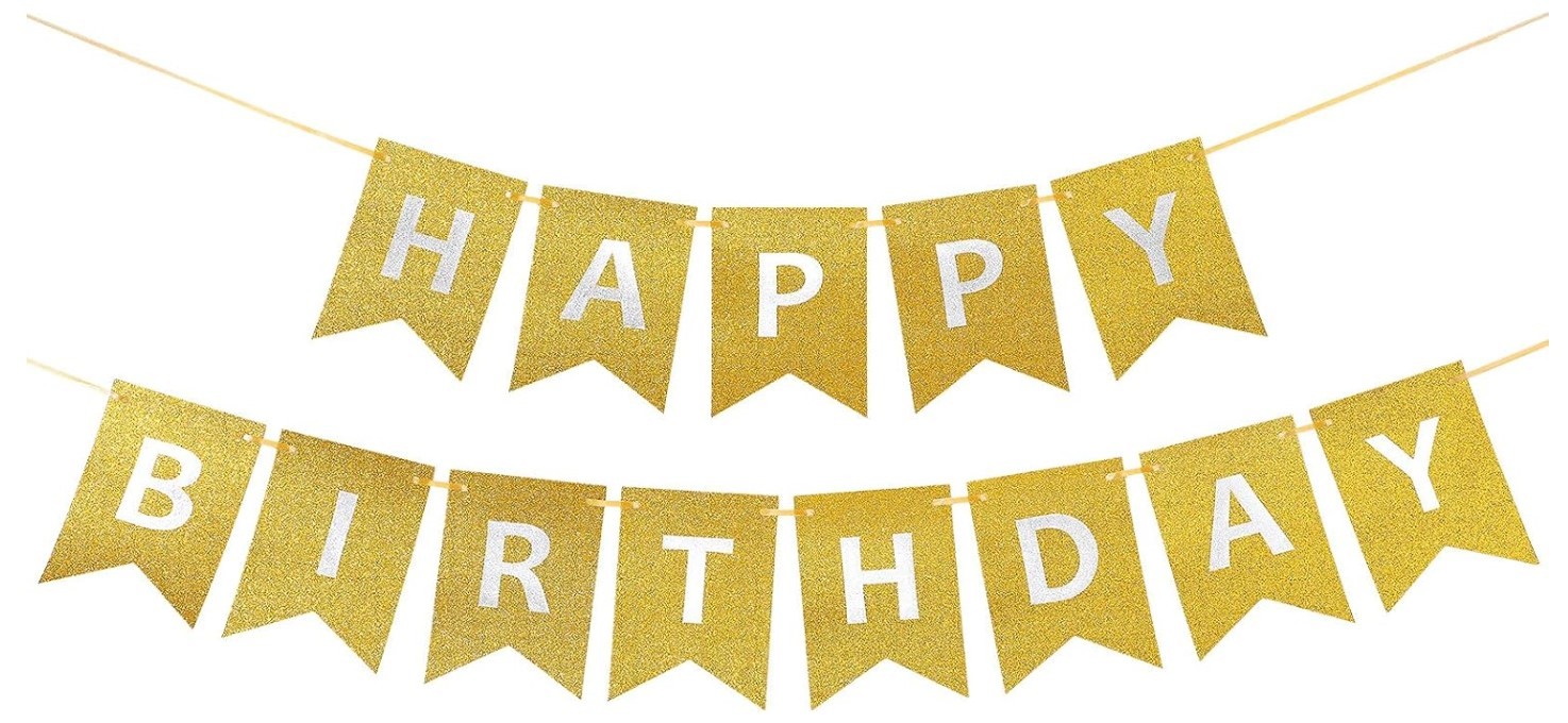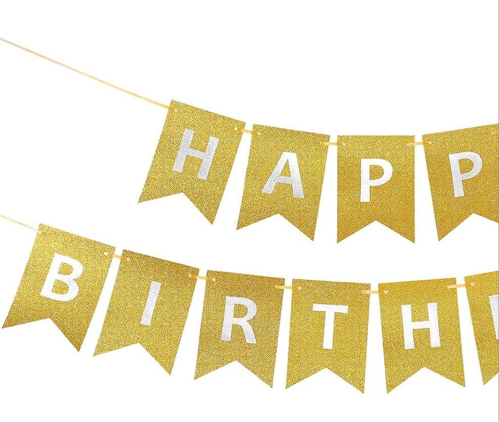 Baner złoty Happy Birthday, brokatowy