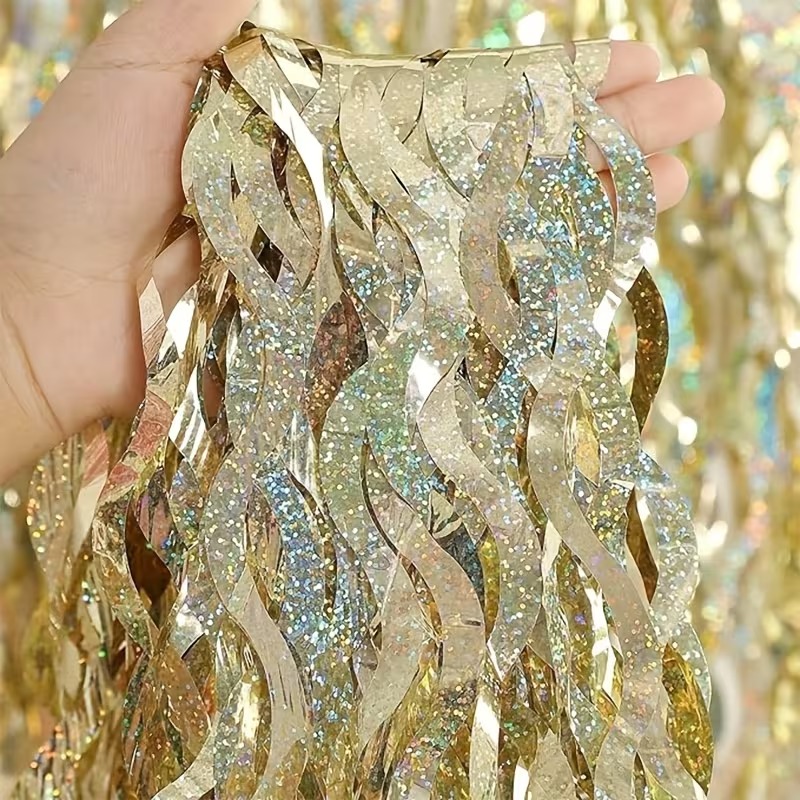 Kurtyna imprezowa paskowa szampański złoty, holograficzna fala 100x200cm